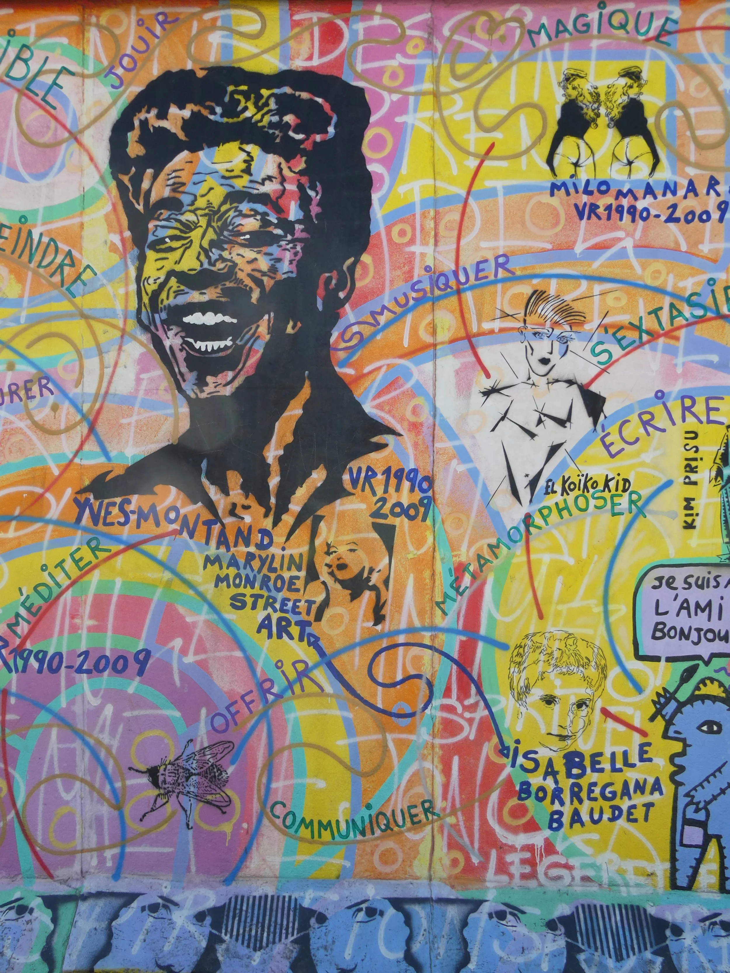 Features from the East Side Gallery, a string of murals on the longest still-standing stretch of the Berlin Wall.