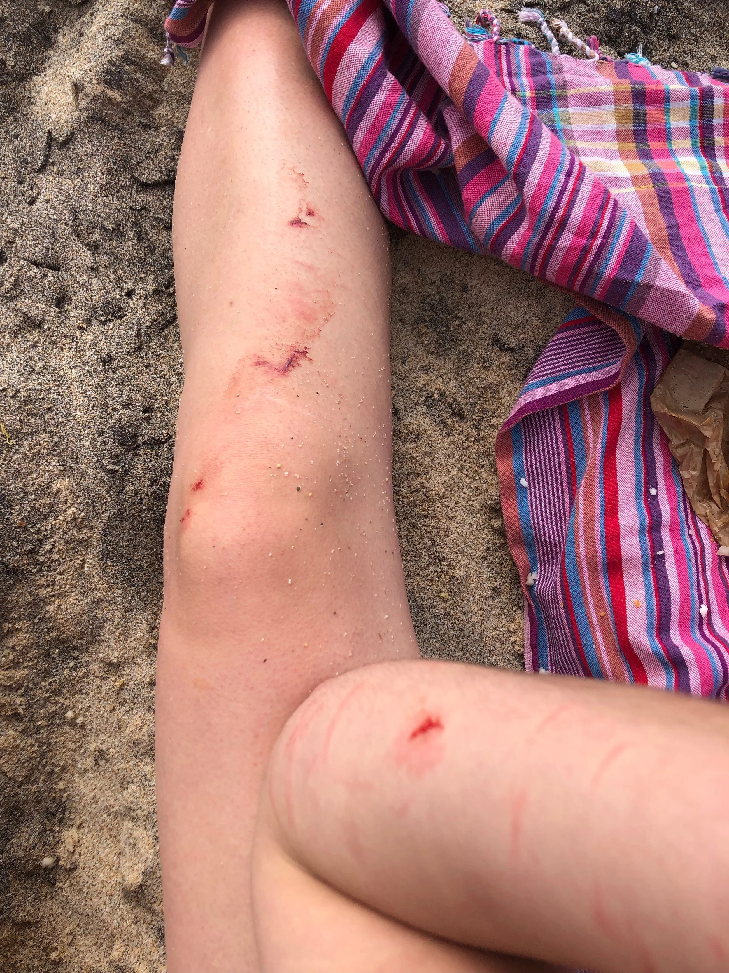 Tough. As we approached shore the waves grew massive and several times slammed me against some stray rocks.